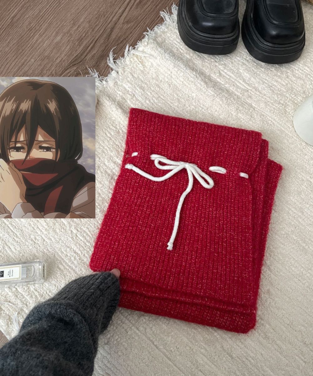 AOT에서 영감을 받은, 전설적인 빨간 스카프 에렌이 미카사에게 선물한 — 따뜻함, 용기, 영원한 유대의 상징입니다.