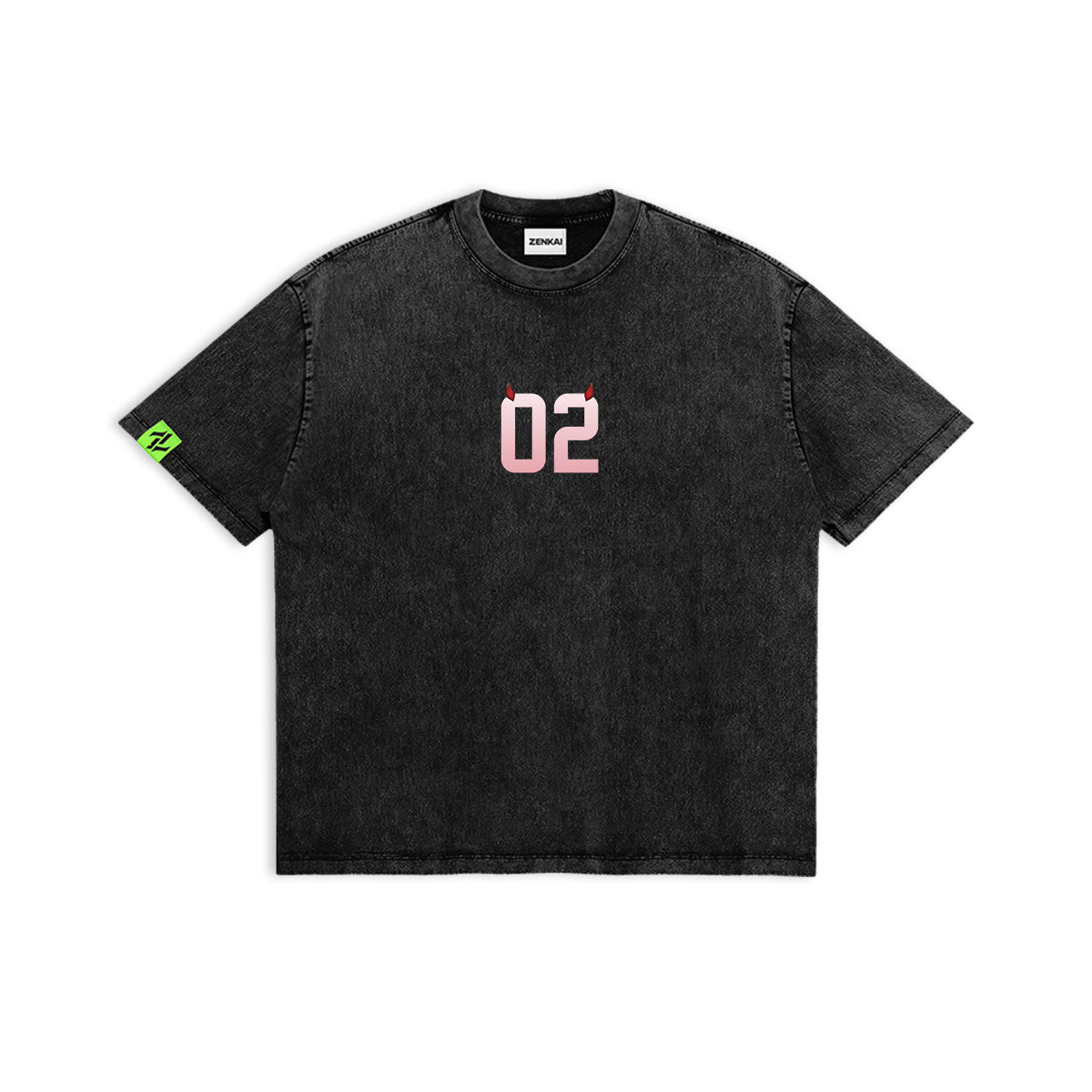 Will you be my Darling? A sleek and electric tribute to the elite parasite. The front of this charcoal-washed tee features a minimalist, pink-to-white gradient of the number "02", complete with her signature small red horns. The back reveals a stunning, neon-infused portrait of Zero Two, her hair flowing in radiant pink streaks against the dark fabric. With a fierce, yellow-eyed gaze and sharp highlights, this design embodies the untamed energy and tragic beauty of the Jian bird. A premium essential for those who walk the line between human and hybrid.