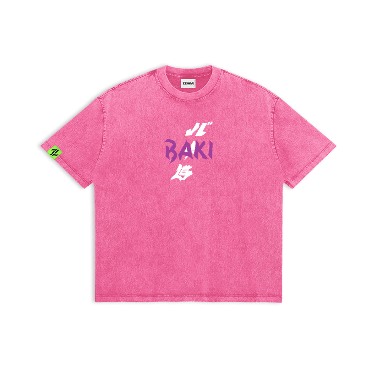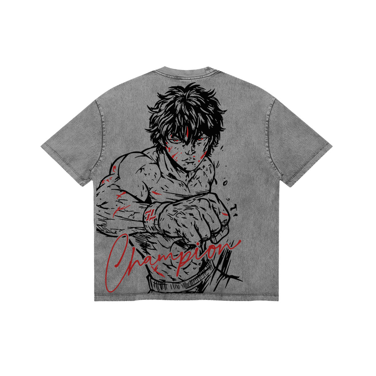 Surpass the Ogre. A raw and visceral tribute to the underground arena champion. The front of this charcoal-washed tee features a sharp, distressed "BAKI" typography with aggressive red kanji, setting a tone of combat readiness. The back reveals a massive, ink-etched illustration of Baki in mid-fight, his body scarred and muscles tensed, captured in a gritty manga-sketch aesthetic. Below him, the elegant "Champion" script in blood-red marks his absolute dominance. A premium ZNK piece for those who push their bodies to the limit and never back down from a challenge.
