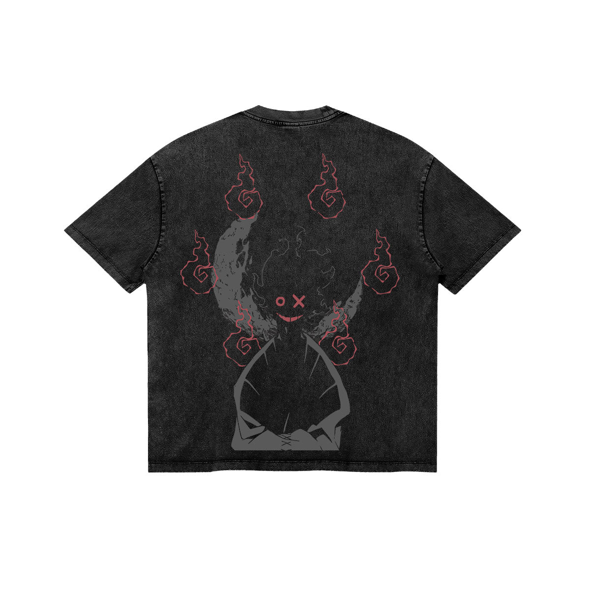The Plasma-wielding Knight. A sleek and mysterious tribute to Arthur Boyle. The front of this charcoal-washed tee features a minimalist, deep crimson "O X" symbol, representing his unconventional and often chaotic logic. The back reveals a haunting, spectral silhouette of Arthur wreathed in the cold blue flames of his plasma sword, Excalibur, while surrounded by floating, demonic crimson orbs. Captured in a gritty, high-contrast style, this design embodies the power of a warrior who is at his strongest when he truly believes in his own fantasy. A premium essential for those who fight with their own brand of chivalry.