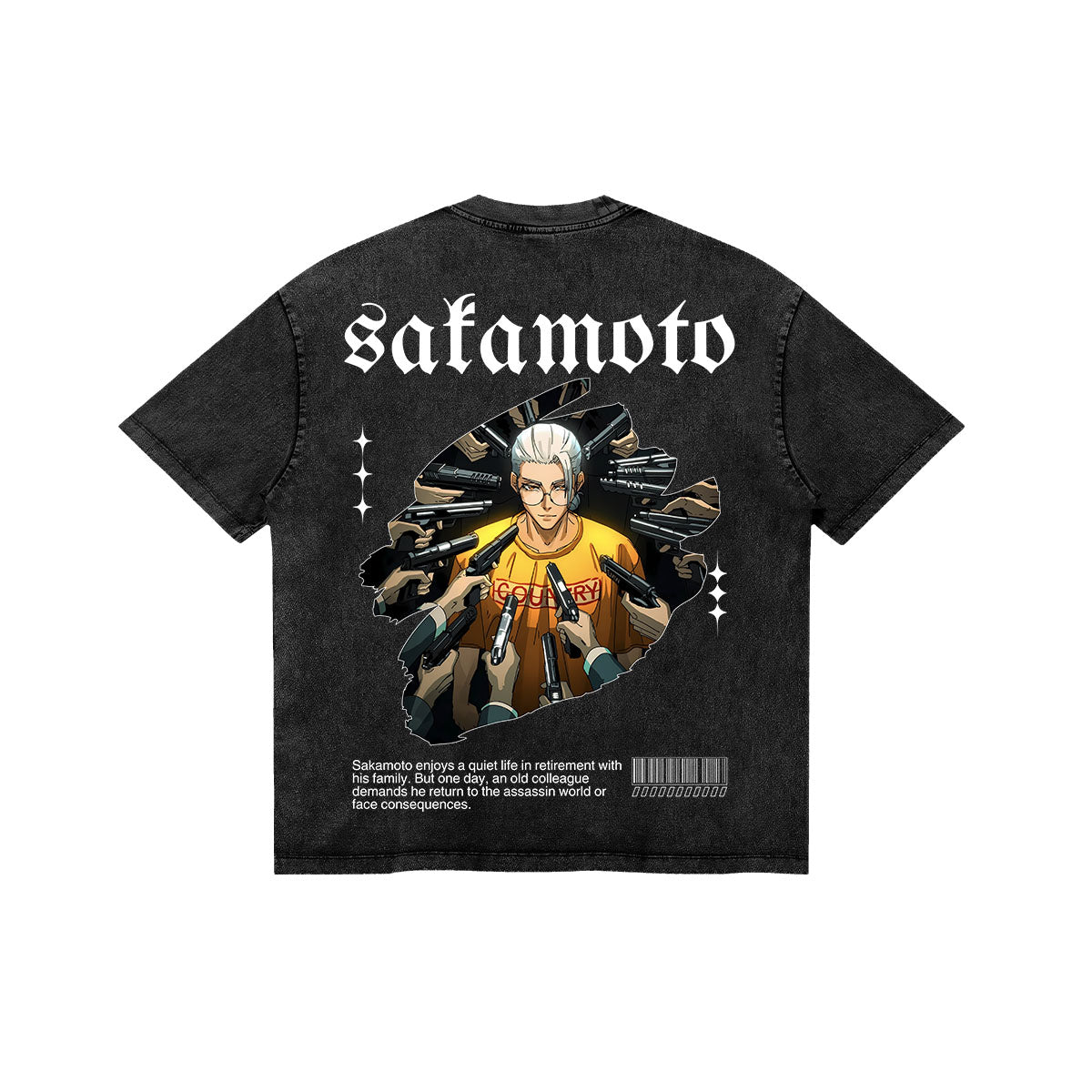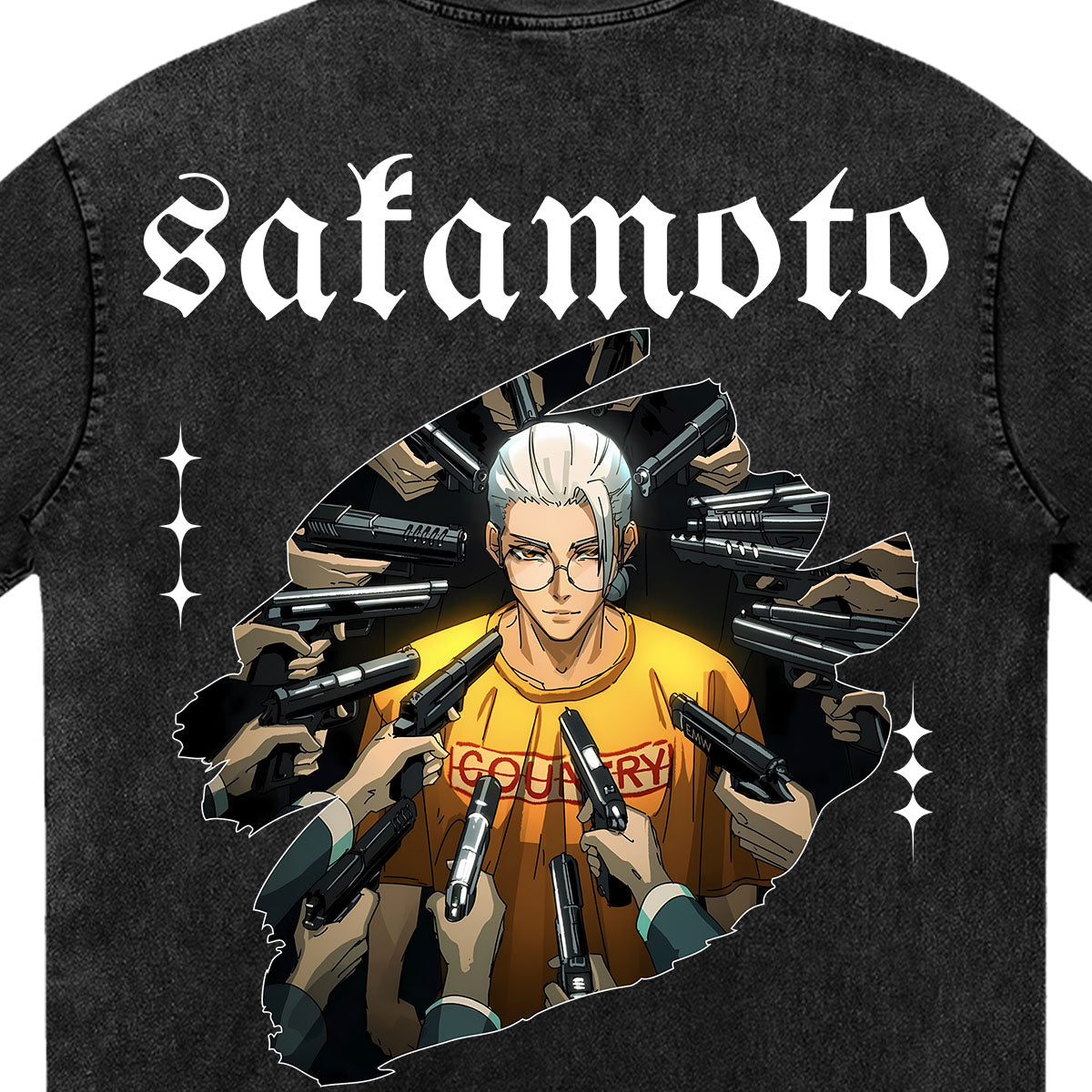 The Price of Peace. Behind the quiet life of a family man lies a history written in shadows. This design captures the tension between a peaceful retirement and the inevitable pull of the underworld. Surrounded by the tools of his past trade, Sakamoto remains unfazed—a reminder that a true master never loses his edge, even when he chooses a different path.
