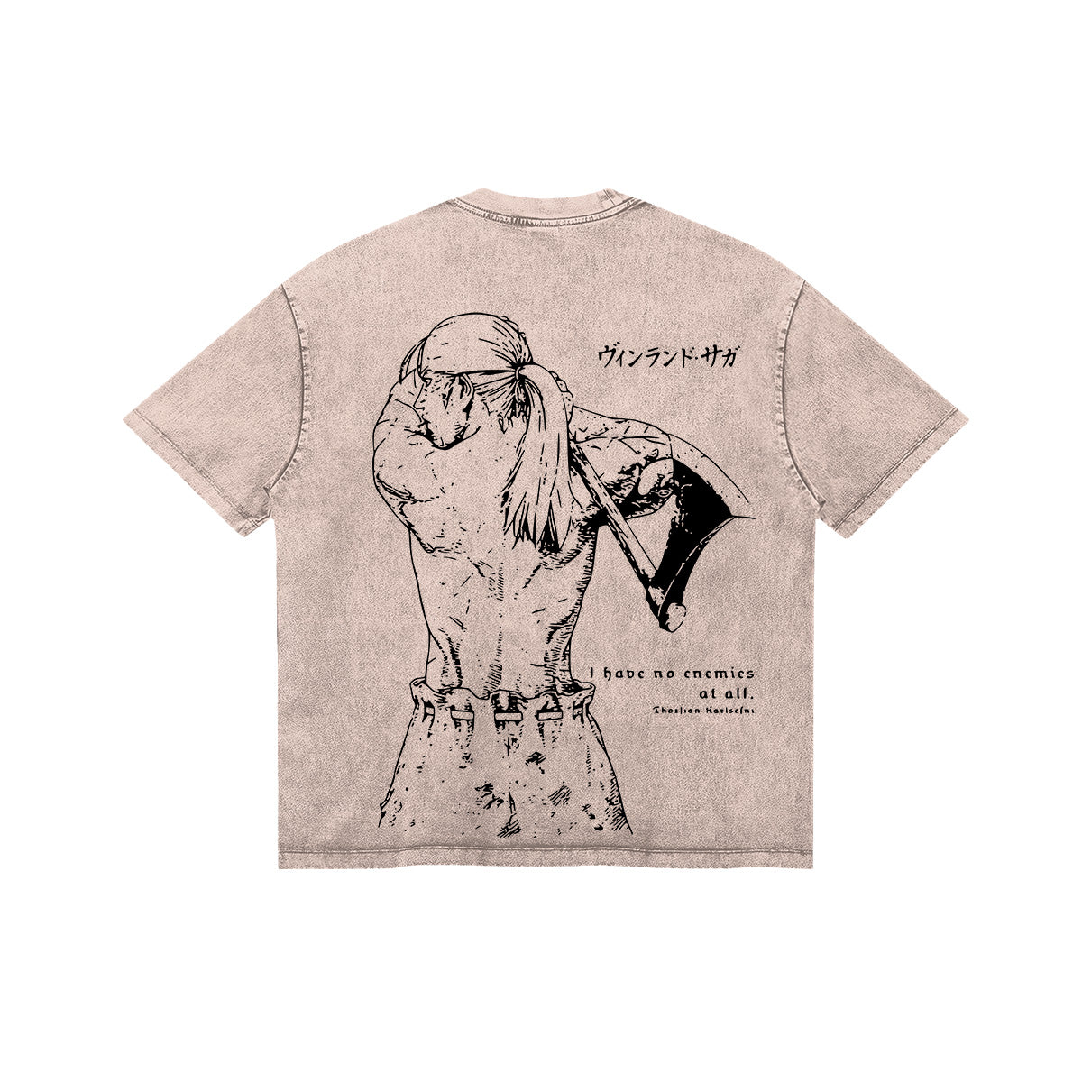 Embrace the Silence. A profound and soul-stirring tribute to Thorfinn’s transformation and his journey toward true peace. The front of this vintage-washed tee features a minimalist, cold-steel crest with the iconic "No Enemies" philosophy etched in a weathered, traditional font. The back is a cinematic masterpiece, showcasing Thorfinn’s weary but resolute silhouette against a backdrop of fading battlefields. Framed by delicate Norse runes and scratchy, earth-toned textures, this design captures the quiet power of a man who has laid down his blades to find his soul. A premium essential for those who understand that the greatest battle is the one fought within.