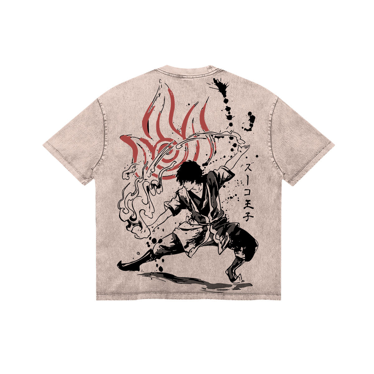 Find Your Honor. A cinematic and powerful tribute to Prince Zuko’s legendary redemption arc. This sand-beige washed tee captures the heat and the heartache of the fallen heir to the Fire Nation. The front features the haunting Blue Spirit mask—the secret identity used to defy the very empire he once sought to lead. The back is a visual masterpiece, showcasing Zuko in a classic firebending stance, his movements echoed by a massive, blood-red Fire Nation insignia. Framed by aggressive ink-splatters and traditional calligraphy, this design captures the moment the boy who chased the Avatar became the man who helped save the world. A premium essential for those who believe it’s never too late to choose your own path.